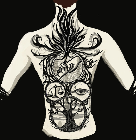 nicely drawn! Love how the background is similar to the cover of the book ^_^