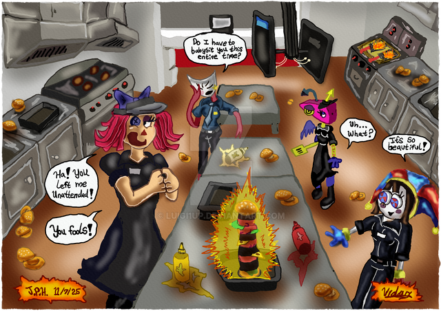 Disclaimer: The following drawing contains various references of copyrighted characters. However, that being said, I want to make it known that I do not nor do I ever, intend to make a profit off this composition. I also do not claim these copyrighted characters as my own. This is done for fun and entertainment purposes only. With that being said, I hope you enjoy.