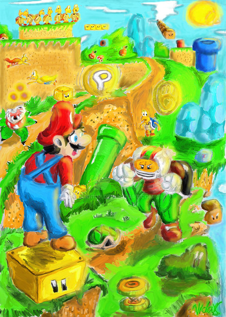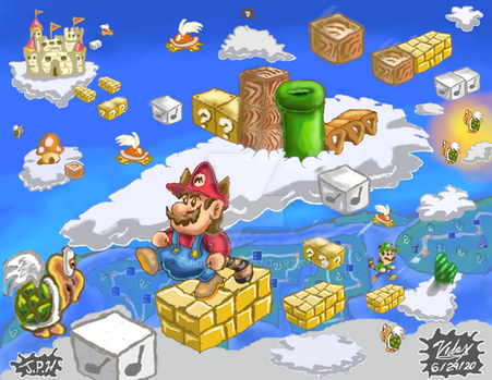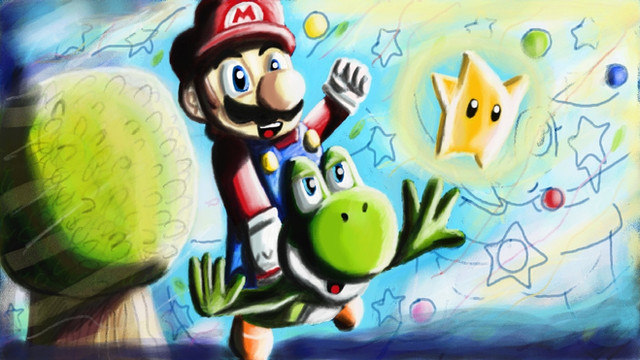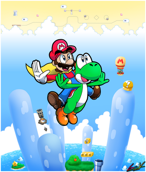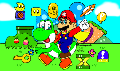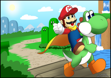 Ah yes, Yoshi and Mario do make a great team. Yoshi helped to raise Mario and Mario spends most of his time with Yoshi. This picture in particular was drawn on a trip to the coast. Whenever I travel, I usually bring a book of reference images or just books in general with pictures I can use to assist myself. This particular image should be recognizable to any die hard Nintendo fan. For those who are confused, this pose was referenced from the Nintendo Power guide book of Super Mario Advance 2, which I happen to own. However, I changed up the background a little and gave this picture my own spin. I hope it shows. This was fun to do and I do like how it turned out for the most part.