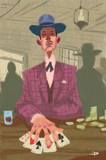 He's gotta know when to hold em, know when to fold em... Lol. Nice drawing, Luigi.