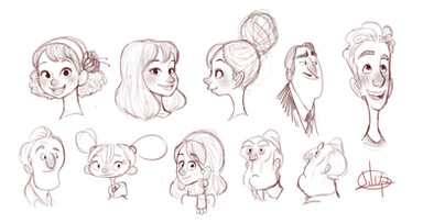 This was a fun study! I drew a row of different character profiles, copied the heads and changed them to create new characters!I did this by copying the top row of heads, changing the opacity and on a new layer re-drew new characters