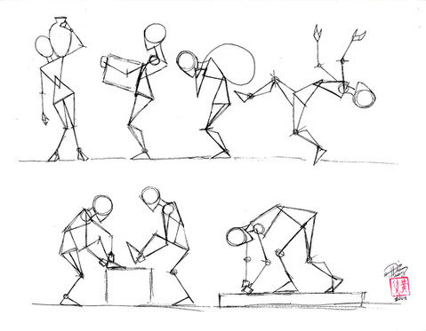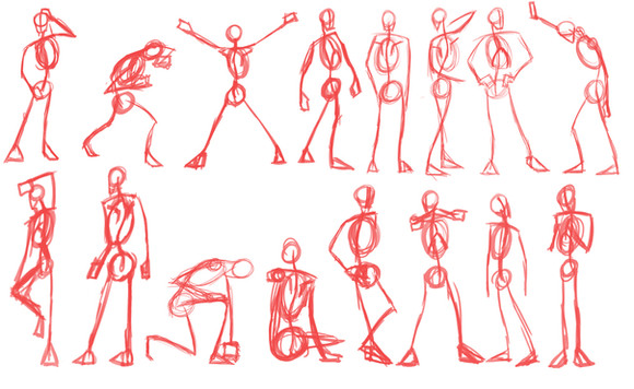 I thought it would be nice to share one of the ways I sketch out character ideas.I first sketch the simple head and body shapes, then I sketch lines for legs and arms to create a pose template. I then use the sketches to create a final character design