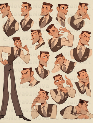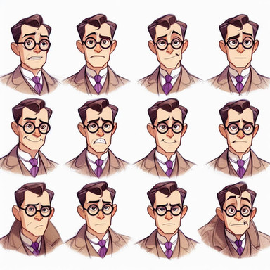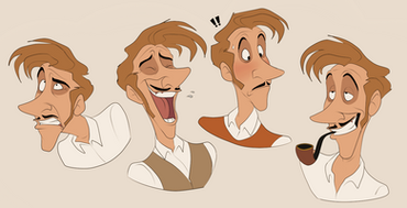 The expressions all look great, my favorite is the third on the top row because it just makes me laugh for some reason. The coloring is also nice, vibrant and lively, fitting for the expressionistic (sorry for the pun, I just had to ) faces he's making. Lastly, I realize this isn't the main purpose of this piece, but I really like this fellow's design; retro in a way that reminds me a bit of the Incredibles. Keep up the good work!