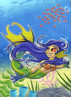 I wanted to try something a little different for #Mermay this year, so I thought making a game concept would be fun! This is Mermazing Racing, an underwater racing game. I'm thinking it would play similarly to Diddy Kong Racing and Mario Kart. Here's a screenshot mock upRelated content