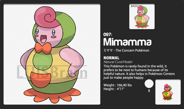 I decided to go for a bulky, slow special attacker. It's clearly higher than the ozone layer, so by any logic it should be very slow - tied for second slowest with Ferroseed, Trapinch, and Bonsly. Its dinky appendages also don't lend well to physical attacks, but it makes up for this with great (for its BST) HP, Special Attack, and Special Defense.