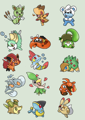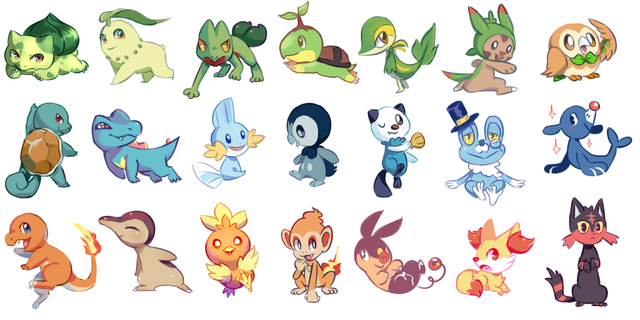 #fakemon #grass #lol #pokemon #starters #water #luisbrain #tekioh #zenev #new #old #fire #zeiyahn