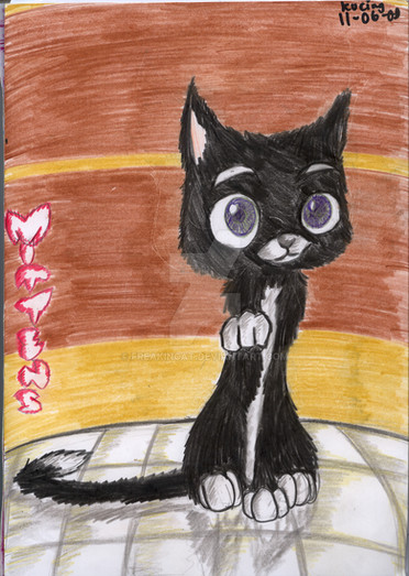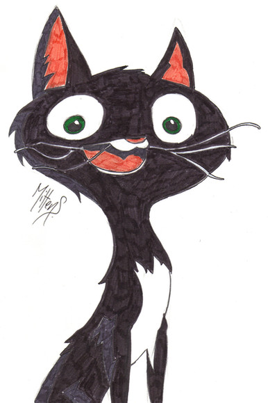 Well i decided to draw mittens from "bolt"movie because i like it.It is a good movie and i will eventually draw bolt and the hamster well i hope you like this drawing.