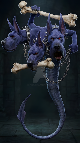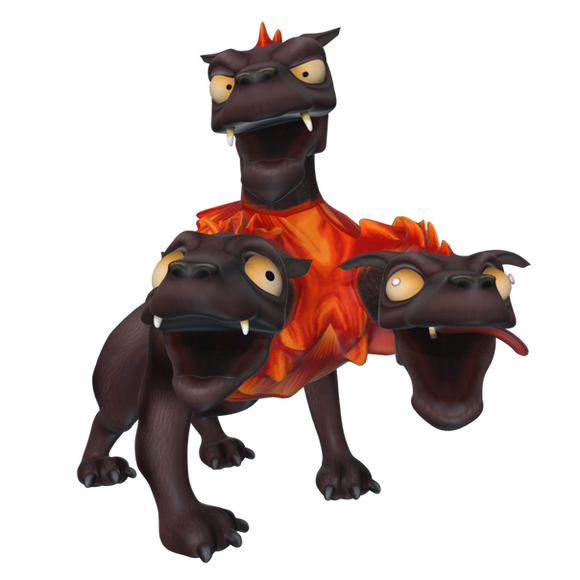 there is definatly something about this 3 headed dog i love. the smooth shape, the expressions of the aggresivity that the 3 heads have. love it.