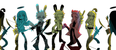 It's good...The blue haired one is Kneesocks and the green haired one is Scanty.