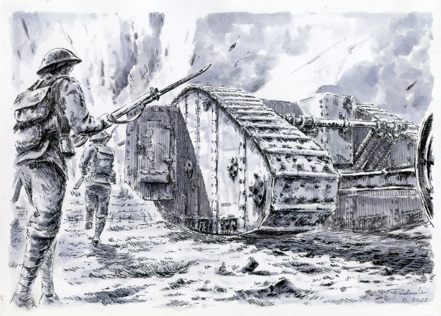 #environment #esch #forward #lukas #march #nature #painting #surreal #war #army #soldier #tank #worldwar #worldwar1 #ww1