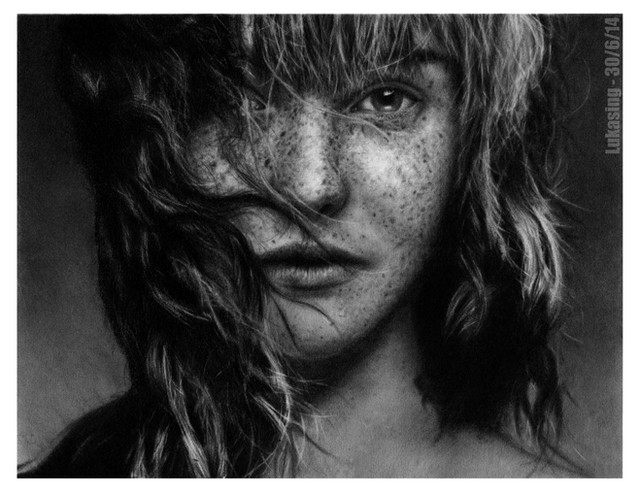 what a work! and what magic hair you drew... amazing lights and the skin with the freckles - quite speachless am