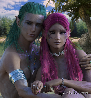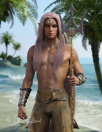The scaled skin that I'm using for Raen as well as Caspian and Umi is the from Laguna-Mermaid character. It's created for Genesis 3 Females, but as you can see with Caspian and Raen, it looks nice on males as well. It's easily adjusted to fit male figures using the UV Swap tool!