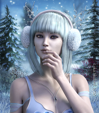 This is my entry for DAZaholics Weekly Themed Feature; The First Snow. Such a frosty theme was just perfect for an appearance by my snow elf Lumikki!