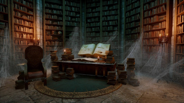 #book #environment #fantasy #illustration #library #night #background #bookshelves #candlelight #interior #clipstudiopaint