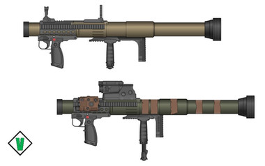 What part of "ten meter arming distance" didn't you understand? But nooo, one of you dumbasses just *had* to have a rocket pistol! Oh, and what is *that*?! It has a foregrip?! Oh the armorer is going to have some choice words for y'all when he sees what you did to his guns.(To be clear, this is a bad idea. These gyrojets aren't really lethal until 10 meters, and a pistol which can't help you at arm's length is not a good thing. But there's always going to be that one knucklehead...)