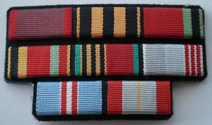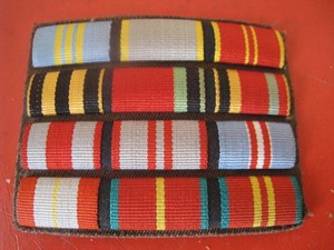 This is pretty much the same as Example One but with the ribbonbar is flat and not curved. It has a black border around. Each individual medal on the ribbonbar is usually made out of ribbon and not plastic on these models. But it could be possible although I have not discovered it yet. Examples seen below: