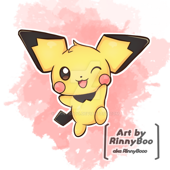 Here is Pichu, the pre-evolutionary form of Pikachu.Original Artwork available HERE [www.etsy.com/uk/listing/165067…