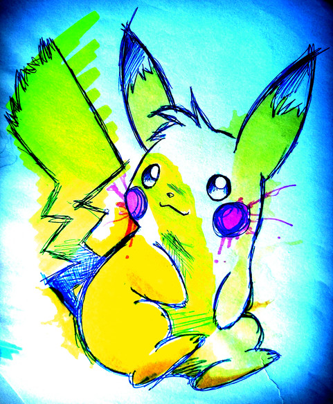 Here is a painting of Pikachu, created using watercolour and acrylic paint.Related content