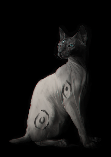 #cat #creature #digitalart #fantasy #halloween #wacom #digitalpinting #illustration #sphynxcat