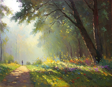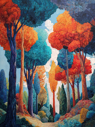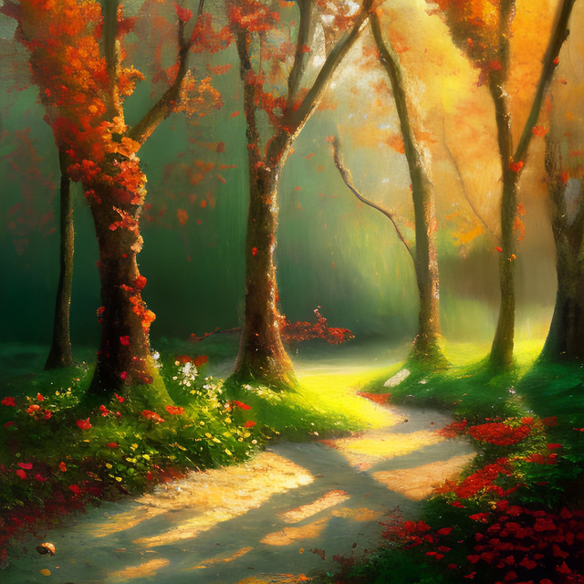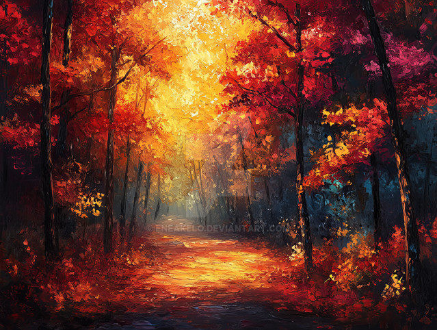 Wow, perfect! I love all the detail put in this painting, the lighting of the forest is just perfect, as it gets darker and hazier as you go deeper. The geisha, as small as she is, fit's in perfectly in the scenery. The colours are gorgeous, and I love how every leaf has a different hue. Just marvellous!!