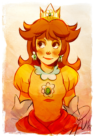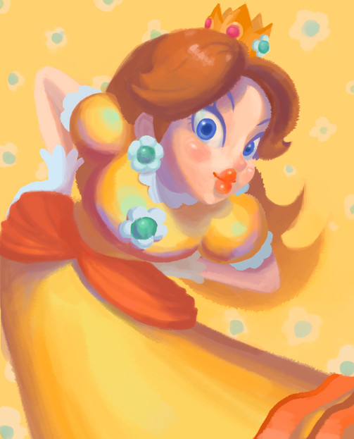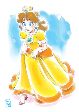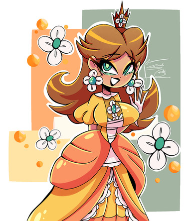 A redesign of princess Daisy, inspired by her classic look. I always liked how the main color scheme for her dress was yellow and white, and how the pink crown contrasted with the yellow!Tools used: Photoshop CS6, Cintiq 13HD