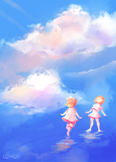 #clouds #girl #pebbles #ripples #rocks #sky #water #originalcharacters