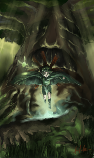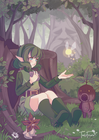 I imagine Saria would feel at peace taking walks through the Lost Woods.Tools used: Photoshop CS6, Cintiq 13HD