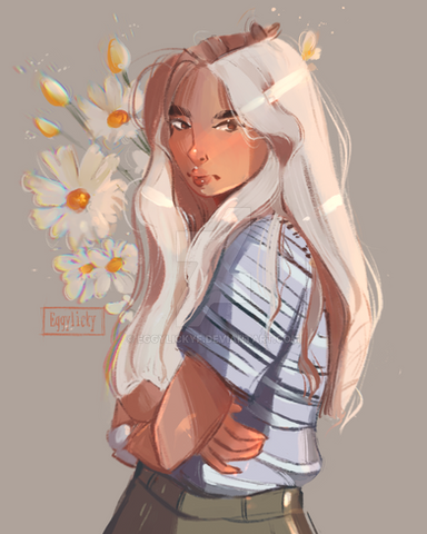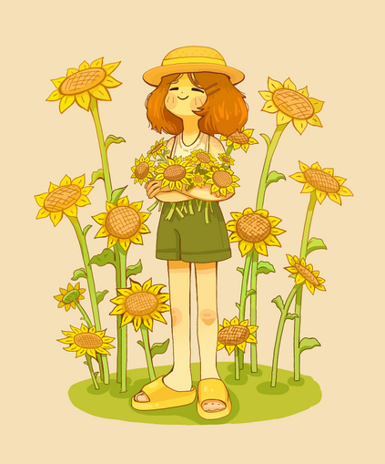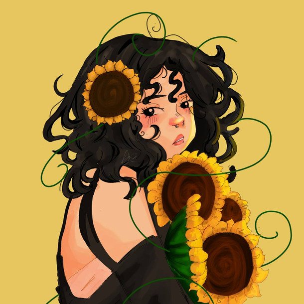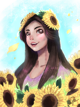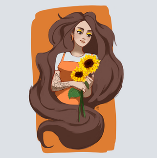 I'm very happy with how this turned out. The sunflowers were very relaxing to paint, and I had tons of fun with the colour palette and the flowy hair!Flowers are actually one of my favourite things in art, even though I don't draw them too often. There are so many different kinds in different colours, they can fit in pretty much any palette!