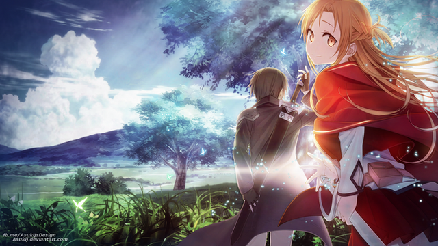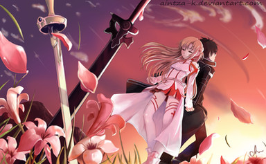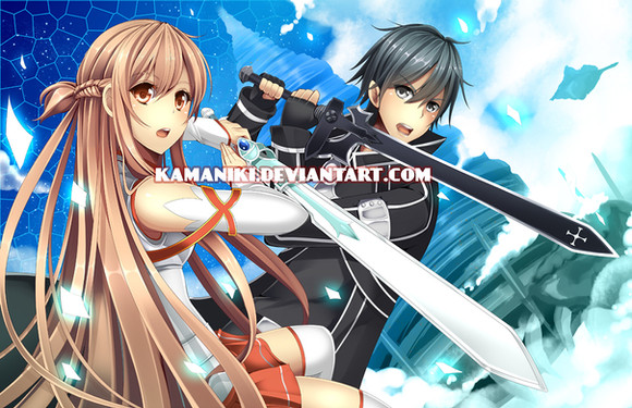 Commissioned piece for;Yup, This is Asuna and Kirito from the Japanese light novel series "Sword Art Online".