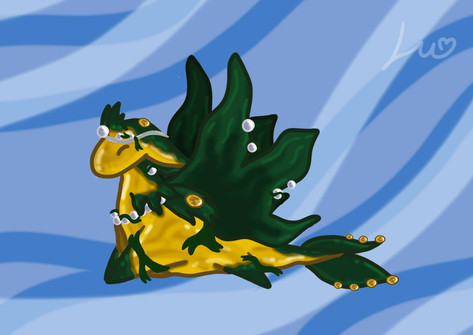 I've came up with a subspecies of aqua florails that don't have the main wings but have extra tailfins. This is my oc Vortex (he/him). He's quite timid and has the power to make algae grow at command. He lives alone and doesn't like the company of others, sometimes can appear a bit cold.Related content