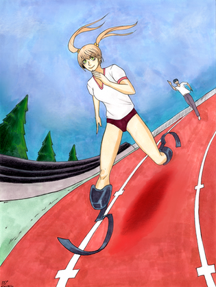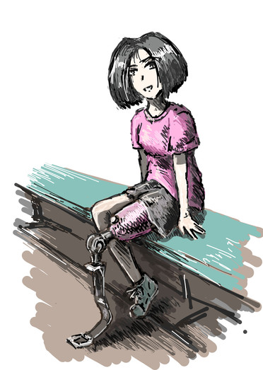 I think the coloring, and facial expressions turned out lovely. Though I would think the hand (on the ground) would be larger, given that the same effect of proximity scaling is given to the knee. Though I wouldn't know i've never tried that effect before, or ever studied reference for it.Β Β Though i really like how the viewing angle is very low to the ground.