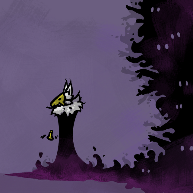 tiefling-shaped blob is my character belmire, and the ominous smiley face is okathu, her eldritch patron whom she affectionately nicknamed "froggy"