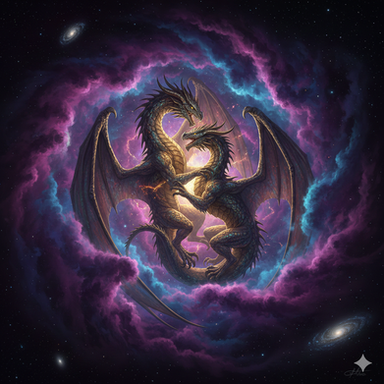 Wow! That's really beautiful. I like how the dragons are in that position and that mystic-space setting looks very good. It's amazing what anybody can do with pixel art. Nice job ^^