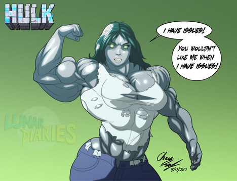 Oh, the muscles and the huge green gozongas are excellent in ALL your She-Hulk pics. But the facial expression really adds to the moment.