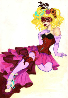 #blonde #coloredpencil #fancy #feathers #girl #ink #micron #pearls #pinup #prismacolor #prismacolorpencils #sketch #traditional #burlesquepinup #coloredpencik
