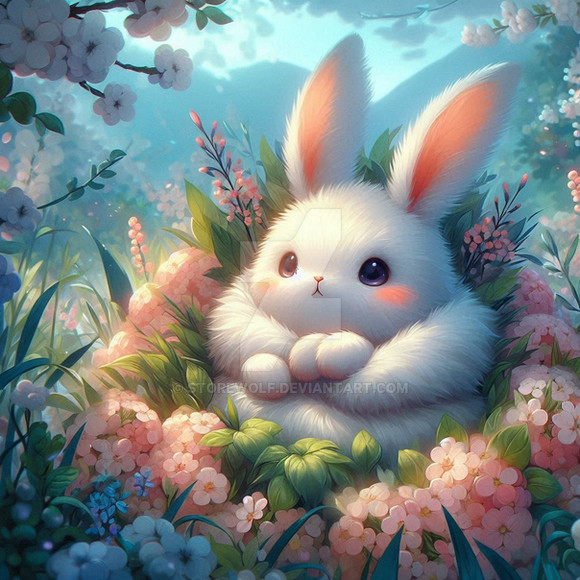 #animal #bunny #rabbit #animalart #digitalart #wildlife #fluffy #aesthetic #beautiful #blossom #charming #cute #detailed #dreamy #floral #flowers #garden #illustration #meadow #natural #nature #outdoors #pastel #peaceful #serene #smallanimal #softlight #spring #sweet #wholesome
