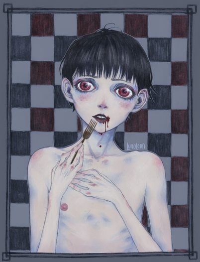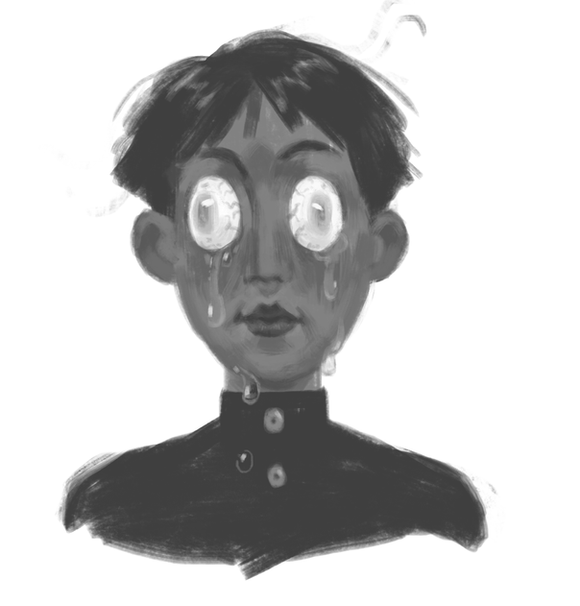i watched coraline, and the button eyes of the step-mother(other mother) replaces the living eyes of the real-life/living reality. tv static in this boys eyes says much.