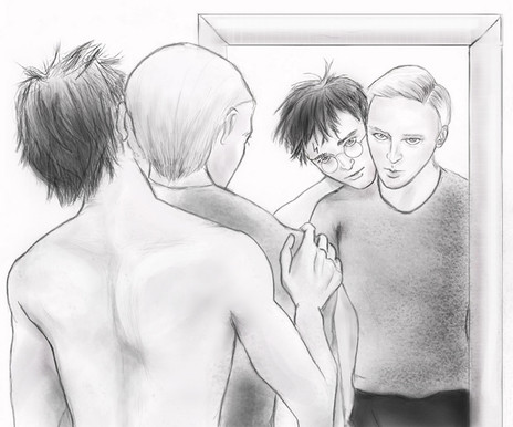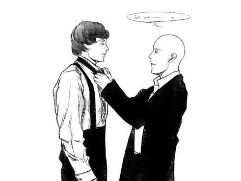 I love this! The black and white is so effectively stark, and I ADORE the corner of a smirk we can see on Draco's face, and the way his sleeve has fallen back. Harry looks pissed off, but also something more... intrigued?