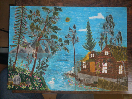 Ballpen, watercolours, acrylics and finger-painting paints. For my friend and her family, especially newborn daughter