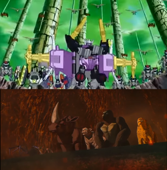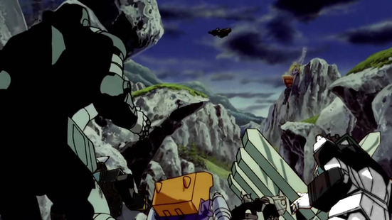 Sky-Byte: (thoughts) They're cheering...for me? I've never been cheered for my entire life. I wish Megatron would cheer for me once. (grunts) Come on men, save the hostages! Don't let them fall!Gaskunk: We need to save ourselves!