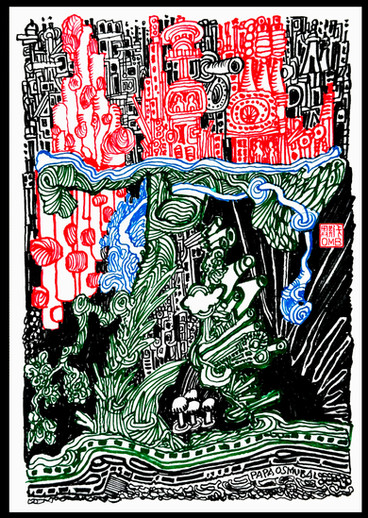 Felt pens on paper. Drawn in 2021.In memory of Allan Kent Tascher