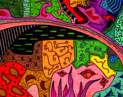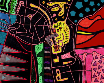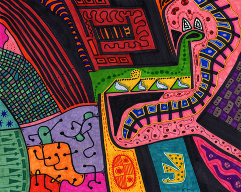 Fat tipped black and colored hi-liter felt pens on bleached corrogated cardboard box top.See also my expanded version of this picture that I made for 1280 X 720 screens: luqu.deviantart.com/art/Box-To…