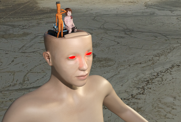 Mesky the cat likes to ride the reciprocating block when people turn the crank of the giant Fischer-Technik cranky thing. And this makes people turn the crank a lot.