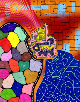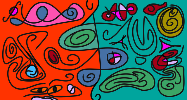 Felt pens on paper, 2 drawings merged together by computer. Likely made in 2011.