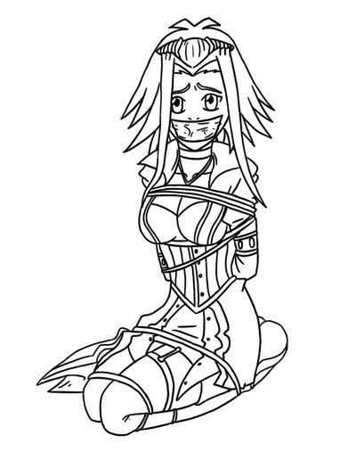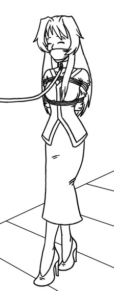 Love the outfit and the tie and most of all, the knot gag in her mouth!