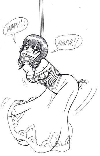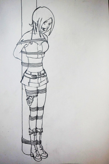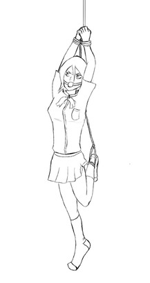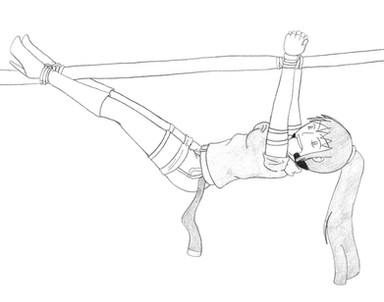 The eleventh of twenty five pictures I accepted as a Christmas Request.Mitsuru, tied to a pole. That's supposed to be water on the floor, although it's hard to tell with black and white.