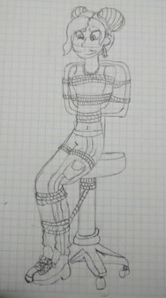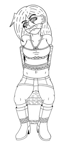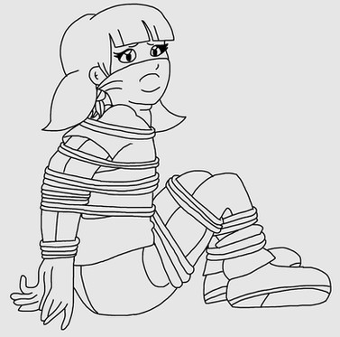 She's definitely easy on the eyes! Very cute with the classic tape gag and the rope tie