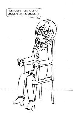 The seventh of twenty five pictures I accepted as a Christmas Request.Estelle, bound, gagged, and being held for ransom!