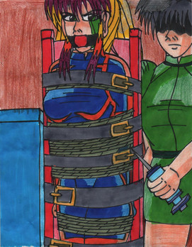 Well that's what matters the most. I would have liked to get her a bit more restrained myself, but the pose was difficult in itself, but drawing the tank was horrific! Not that I'm trying to make excuses or anything. I happen to quite like the other recent idea you suggested, so I'll be sure to have that damsel as helpless as possible in an attempt to make up for this one. When I get to it is another question, as I need to be fair and switch it up at least a bit .
