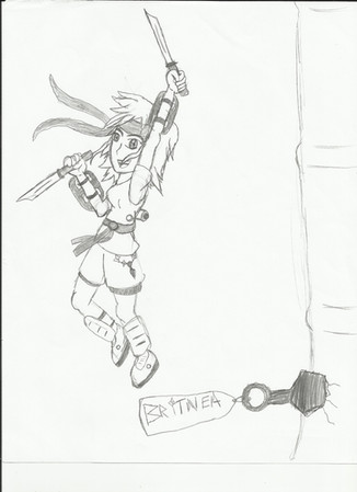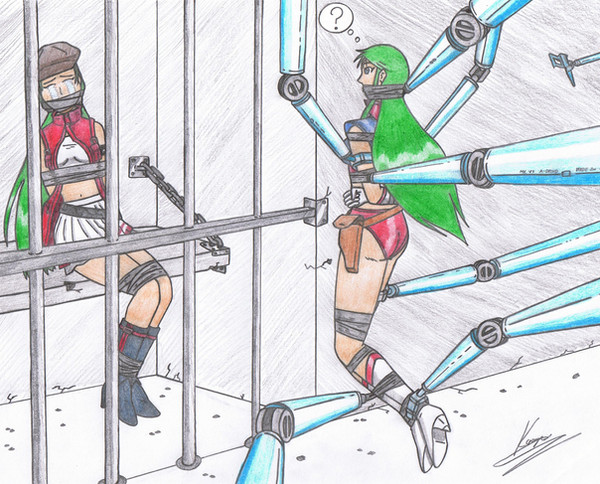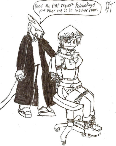 This idea was suggested by , to which I tried my best to illustrate. Credit for the idea belongs to him. (I will now state who gave the idea, unless it was sent by note. Can't have people thinking I'm the creative one!)Here we have Sami, from the Advance Wars series, shackled to some goofy looking tank (Because I can't draw anything other than humans at all. And I can hardly draw humans!). You might also notice she's wearing some sort of band around her head. What is it, you ask? It's taking the tactical strength of Sami and using it to pilot the tank, against Sami's will. Not that Sami knows what's going on, she happens to be masked (which I hope looks decent). You'll also notice she's wearing some funky panties. They're mechanical, and they're to help with waste disposal and such, so I guess Lash plans to keep Sami on her newest invention for some time.